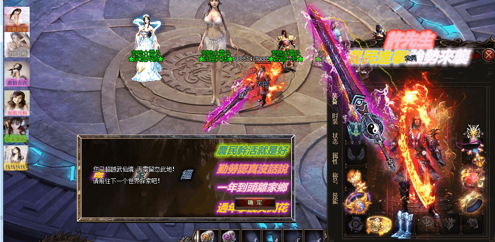 - 【游戏介绍】: 特制酷炫时装,无需下载补丁,微端登录.游戏内自动回收,自动加血功能,本服会一直更新进步