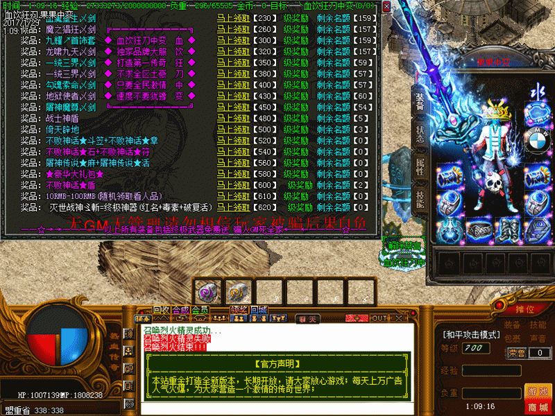 - 游戏更新:游戏内任何说自己是GM,管理员,之类的都是骗子,请勿轻易相信他人