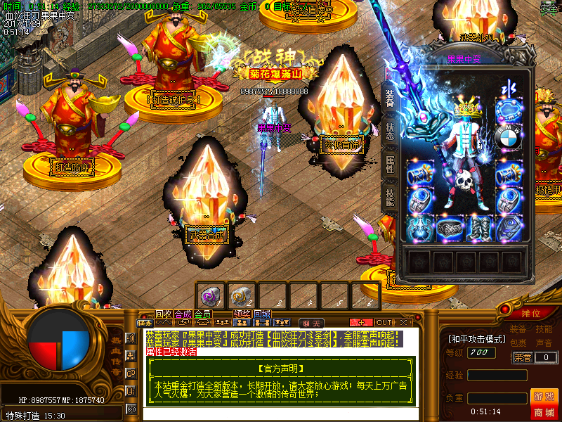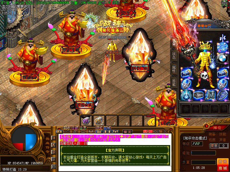- 游戏更新:力团队运营,每天6-8个区,区区人潮涌动,完美爆率,散人终极不在是梦想