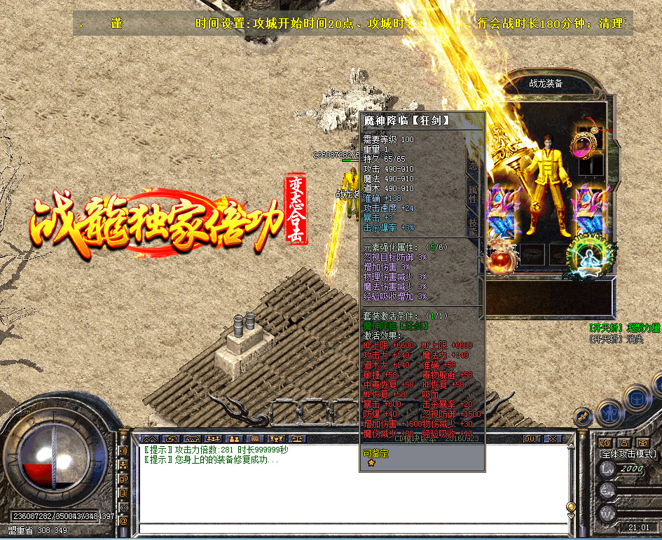 战龍灭神【魔链】 36.倍攻击  每秒回血300W