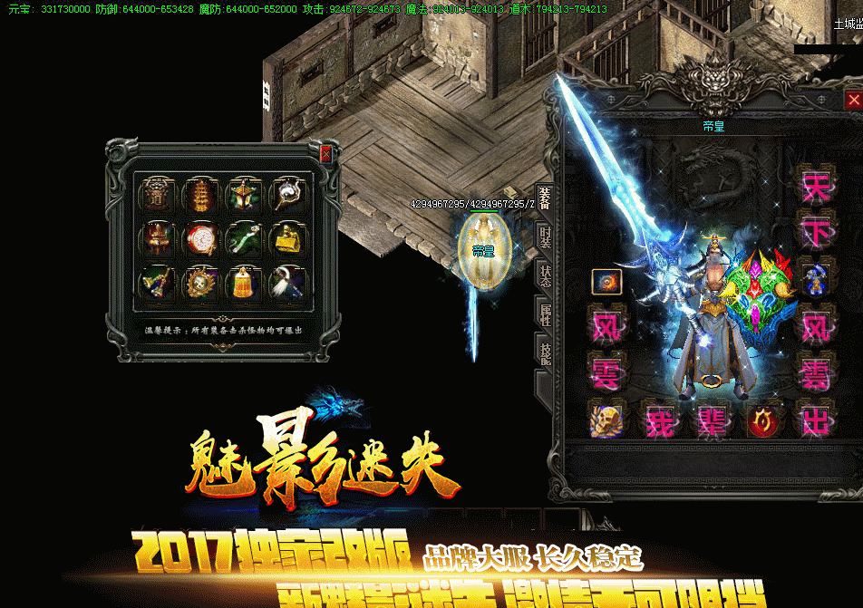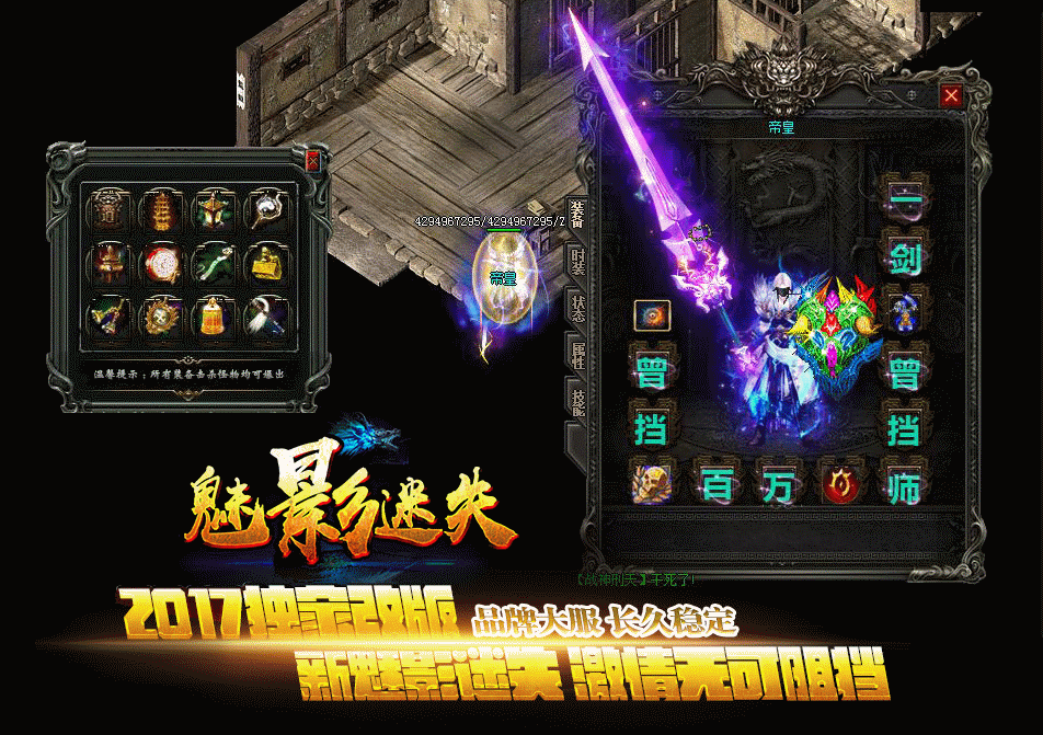 - 【游戏公告】:全新玩法.超绚BOSS.全新BUFF.超多地图(100张打怪地图)!