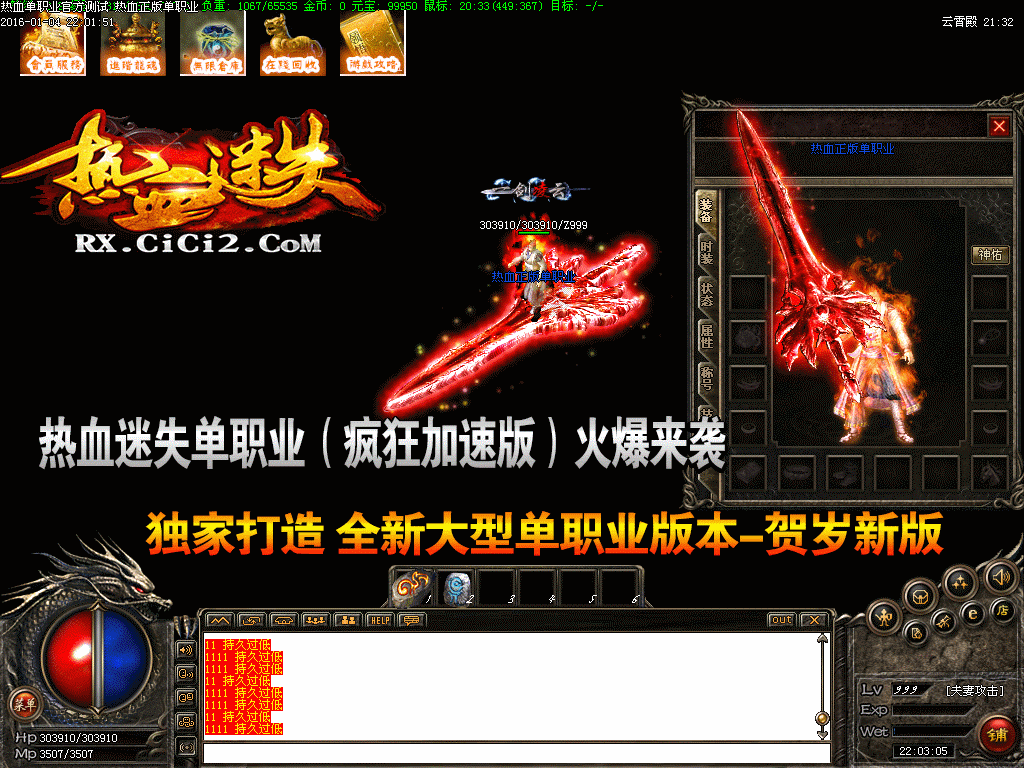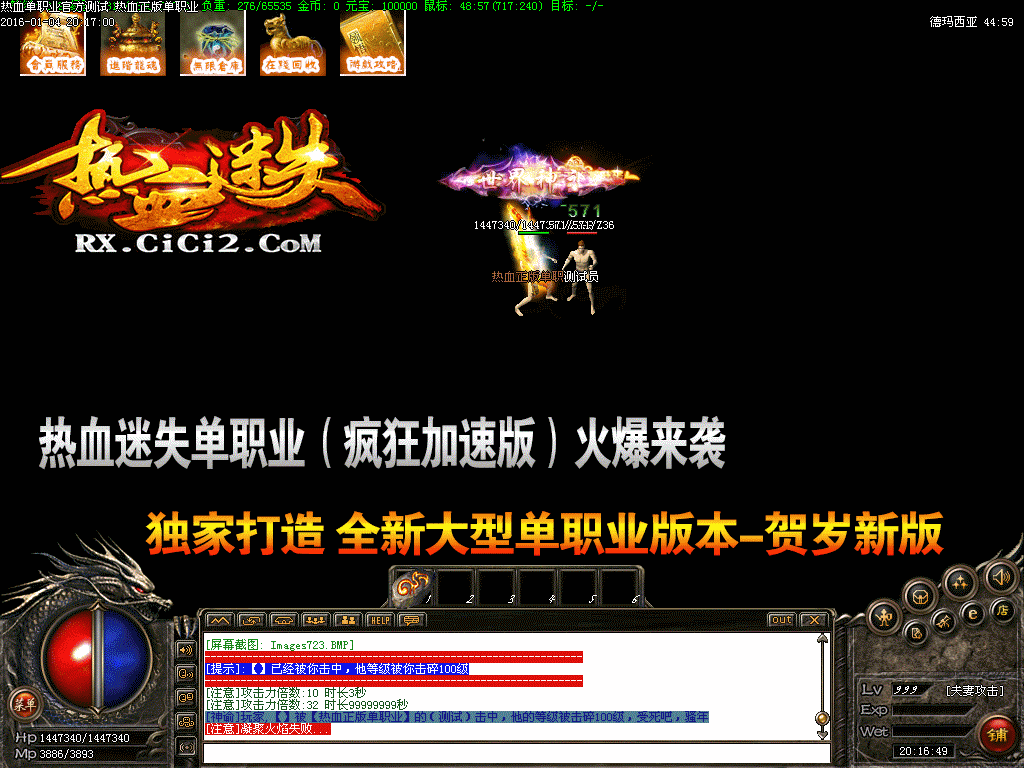 独家全新2016超变热血单职业迷失1季·超大极品·倍攻叠加真实效果万倍!!你可敢来战!