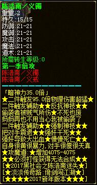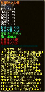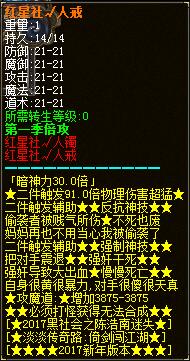 游戏介绍⑤ : 本服共33转,转生越高爆率越好。本服所有装备全爆,让玩家体验爆装备的激情,所有装备已进行测试,PK起来更加爽!