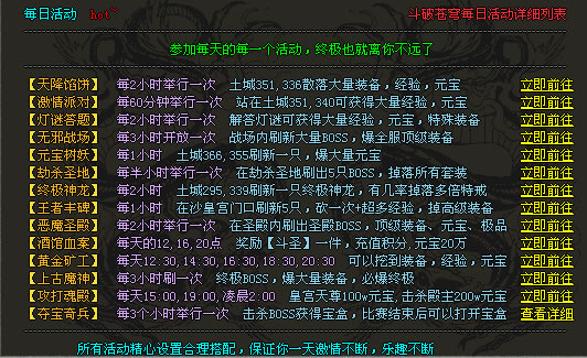 初级攻略:全天24小时不间断活动,会有提示,一定要参加哟!有些高端活动,新手可能有些吃力