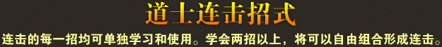 道士们的内在蕴藏着一股无法估量的力量。多年来对精神力的修炼,令他们仿佛天生就与内功心法有某种契合和协调。一旦他们学会如何将连绵不断的释放内力,道士的强大绝对会让你刮目相看、惊叹不已。 |