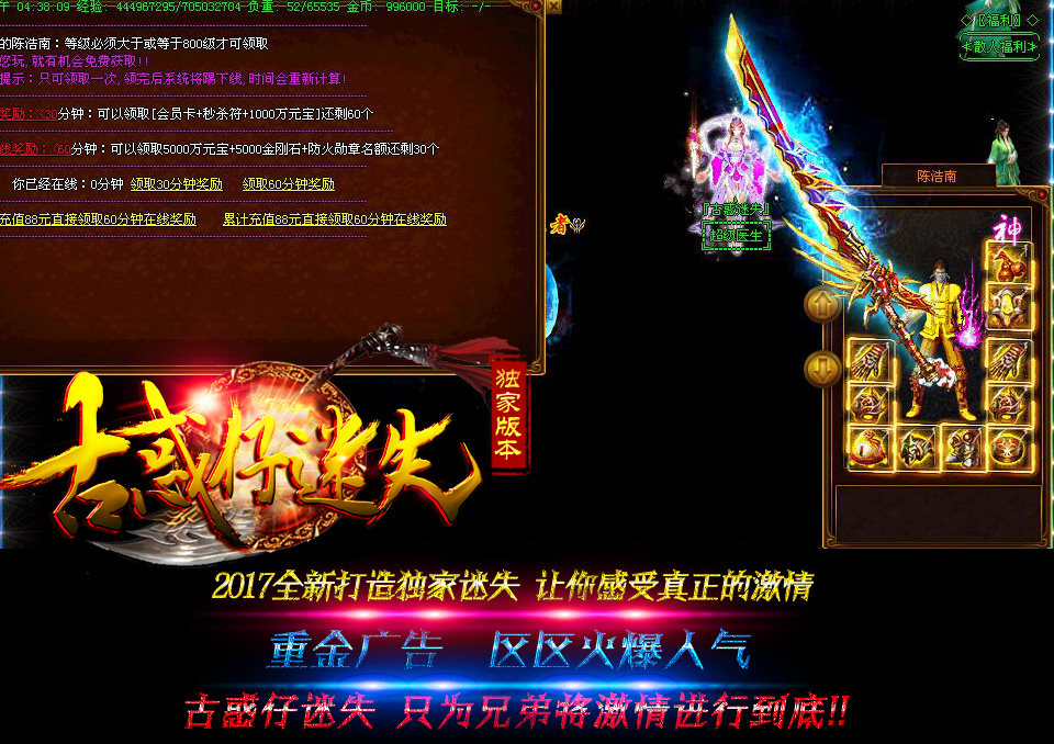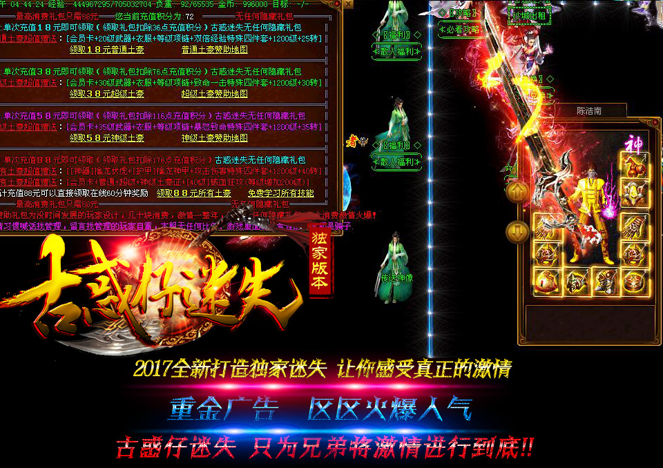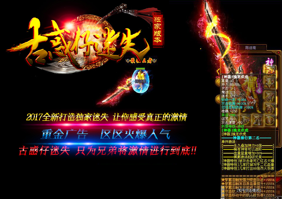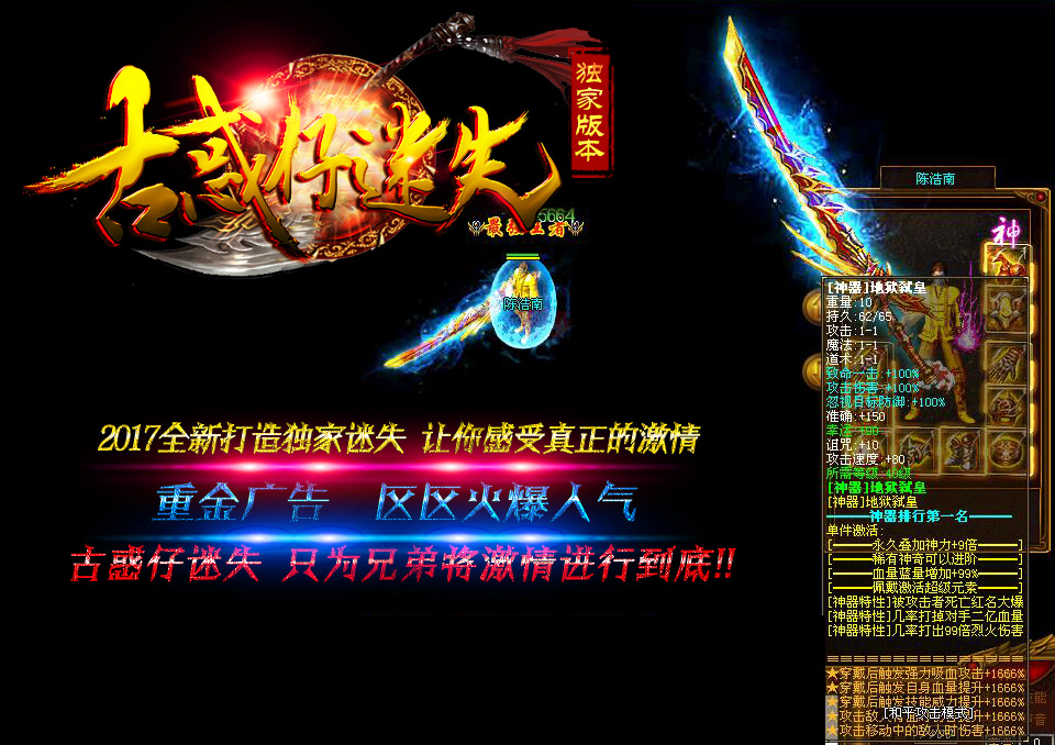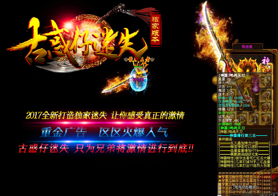 【游戏介绍】:独创打怪模式,全图刷BOSS,调整所有分区爆率,激情耐玩。
