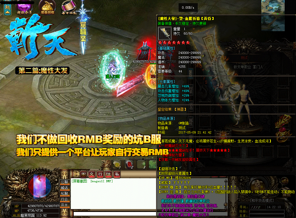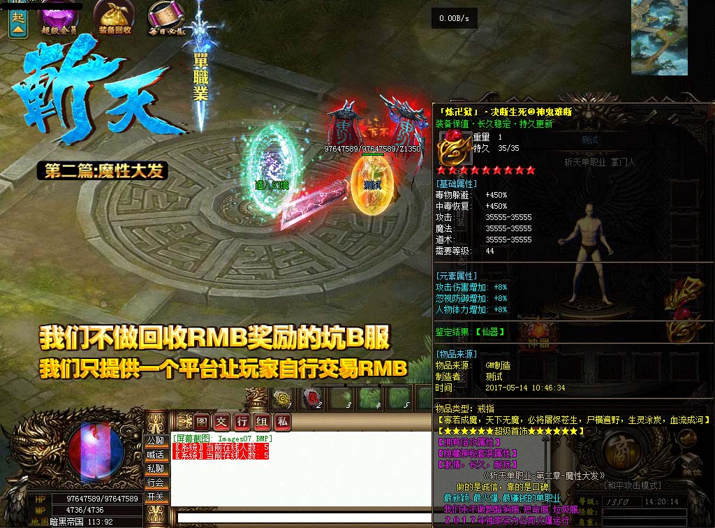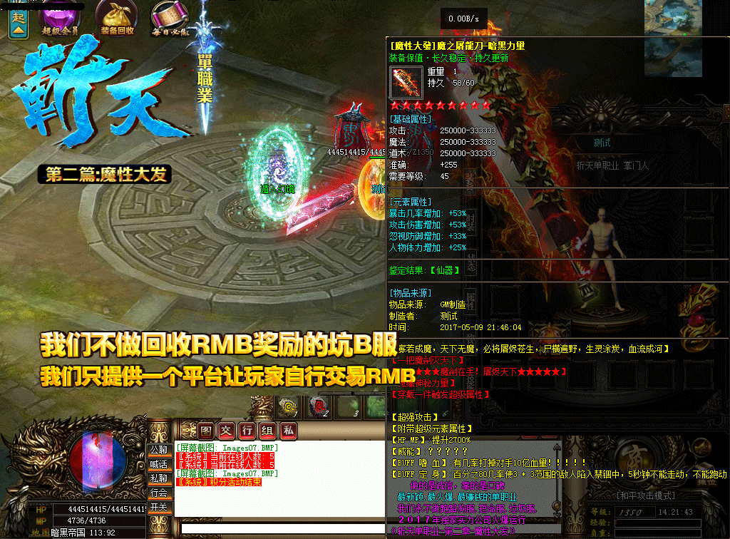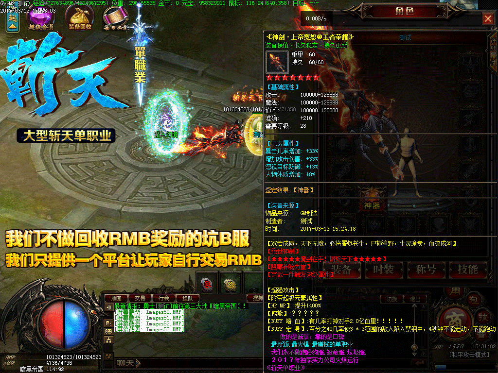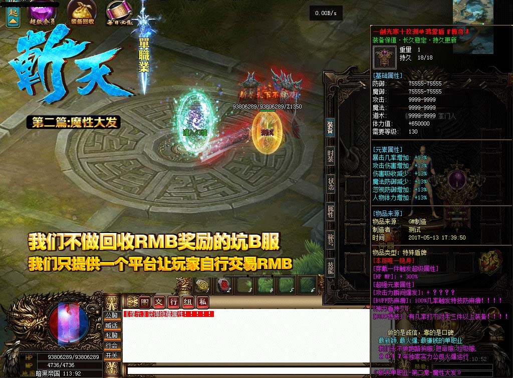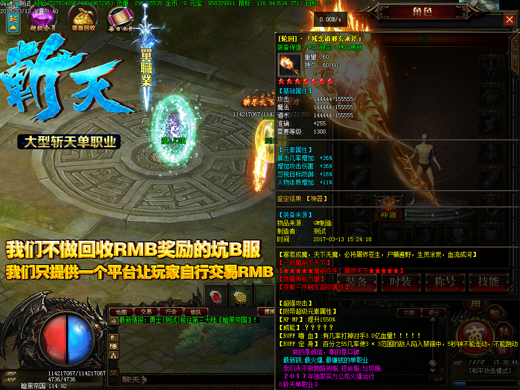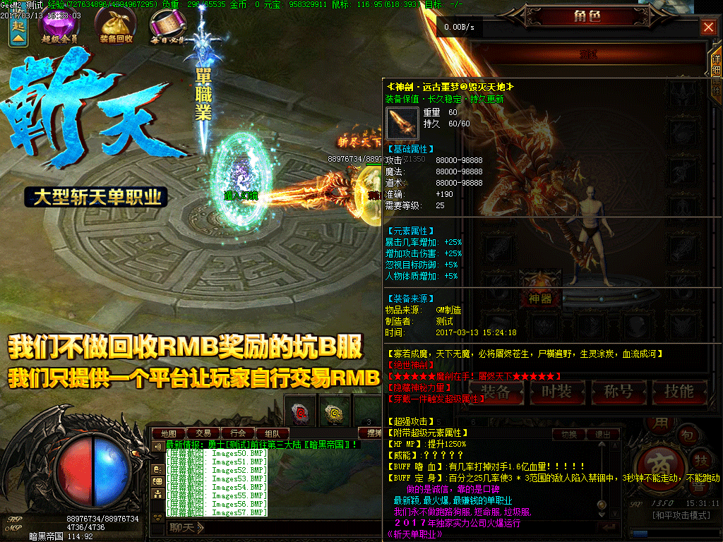 【斩天单职业】: [游戏特色] 本服除了公平还是特么公平,一切靠打!