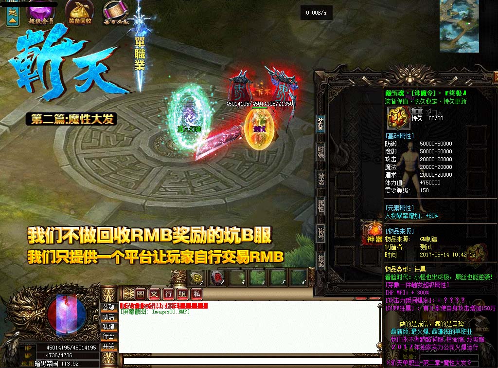 【斩天单职业】: [游戏特色] 装备,升级丹全靠打,所有BOSS均可掉落,有钱也只能找玩家收购!