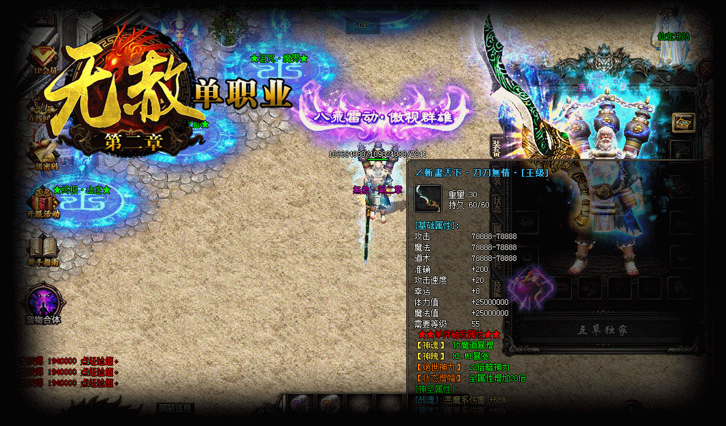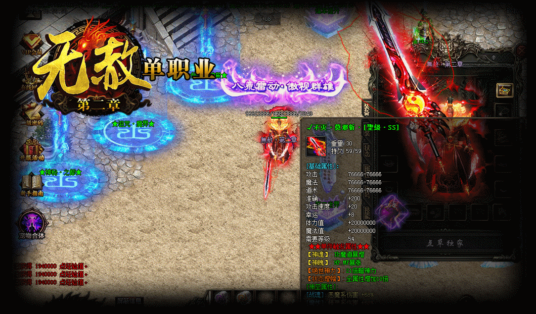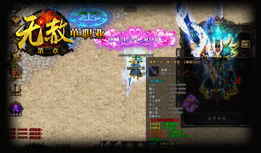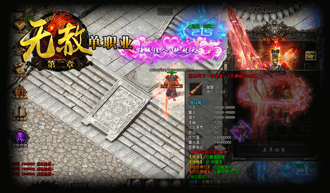 - 【游戏公告】:本服怪物爆率较高,设计非常用心,大怪不爆垃圾,也许打一个大怪就爆一两样东西,但是绝对是好东西