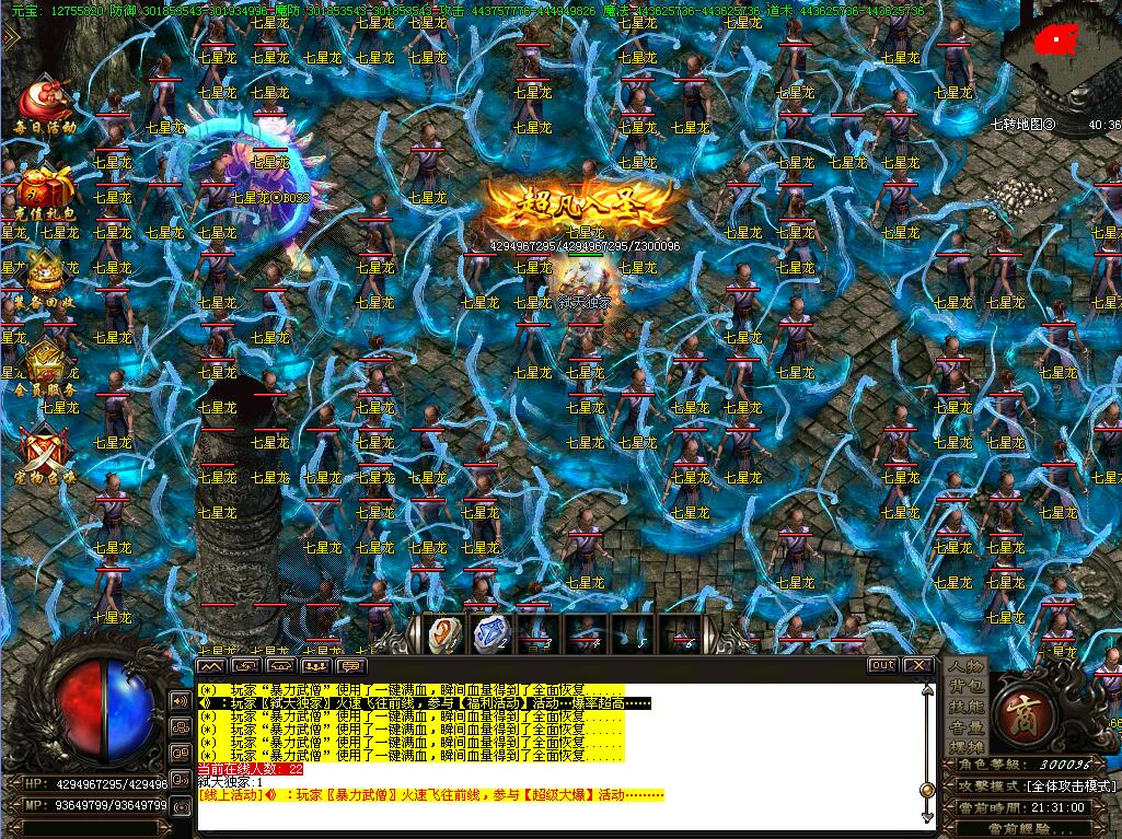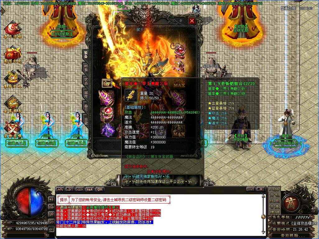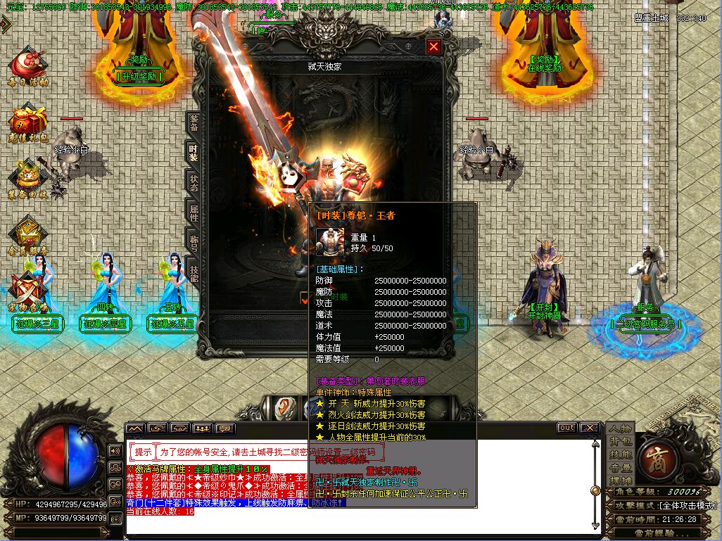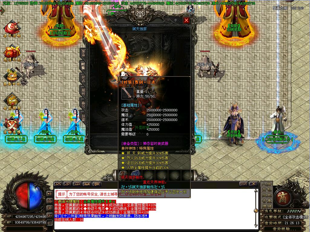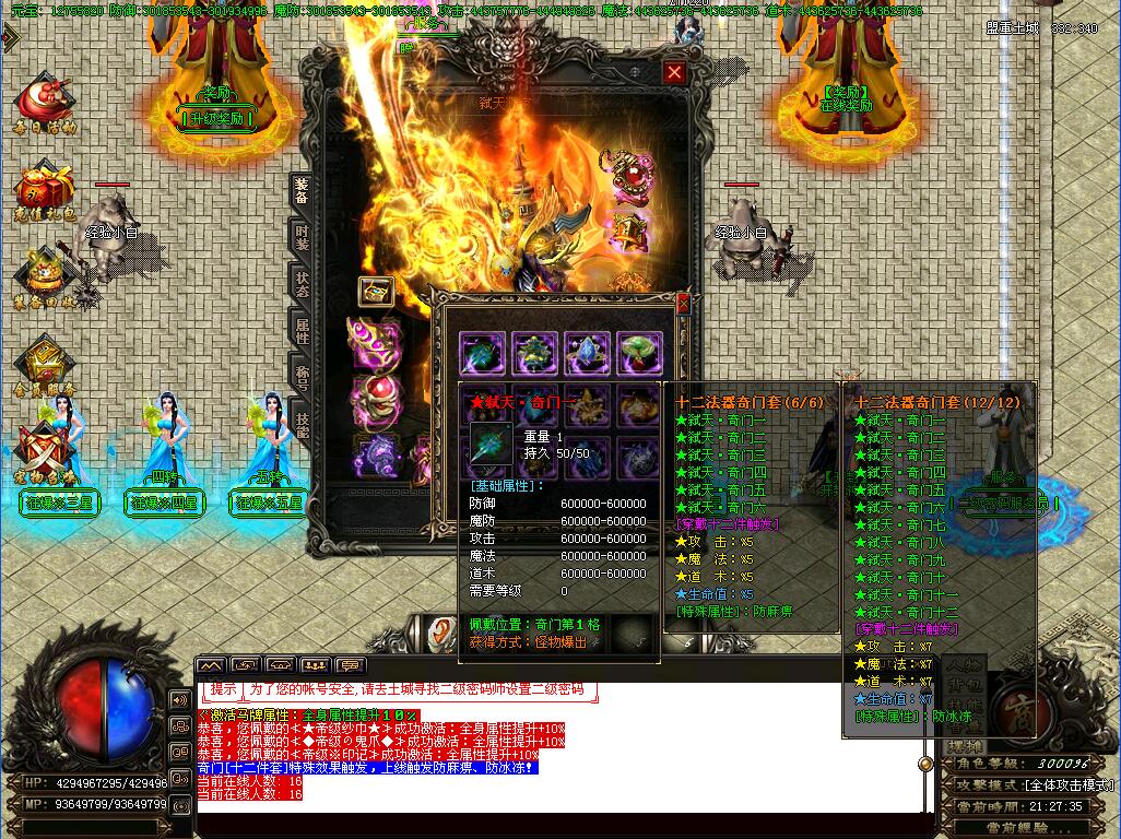充值比例:1元:2000000元宝.封神币1:500.点卡多送100%网银多送100%.不出售装备和材料,完全公平公正原则,所有人同一起点!