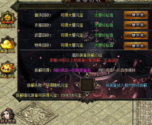 【元宝比例】:1:50W元宝:1RMB点,特色打金+回收称号