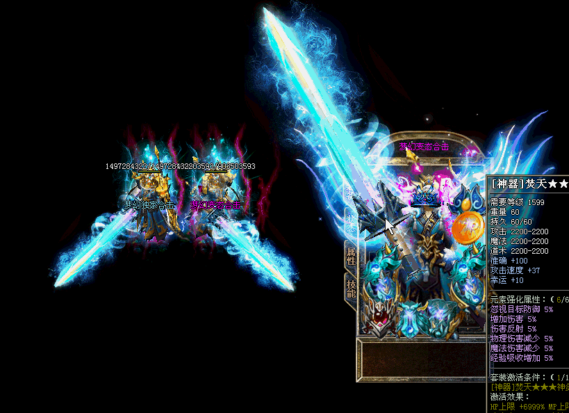武器倍攻介绍>> :[神器]焚天★★★神剑:240倍攻击+吸血+复活+倚天辟地+破复活