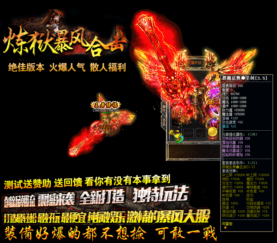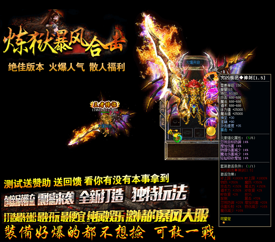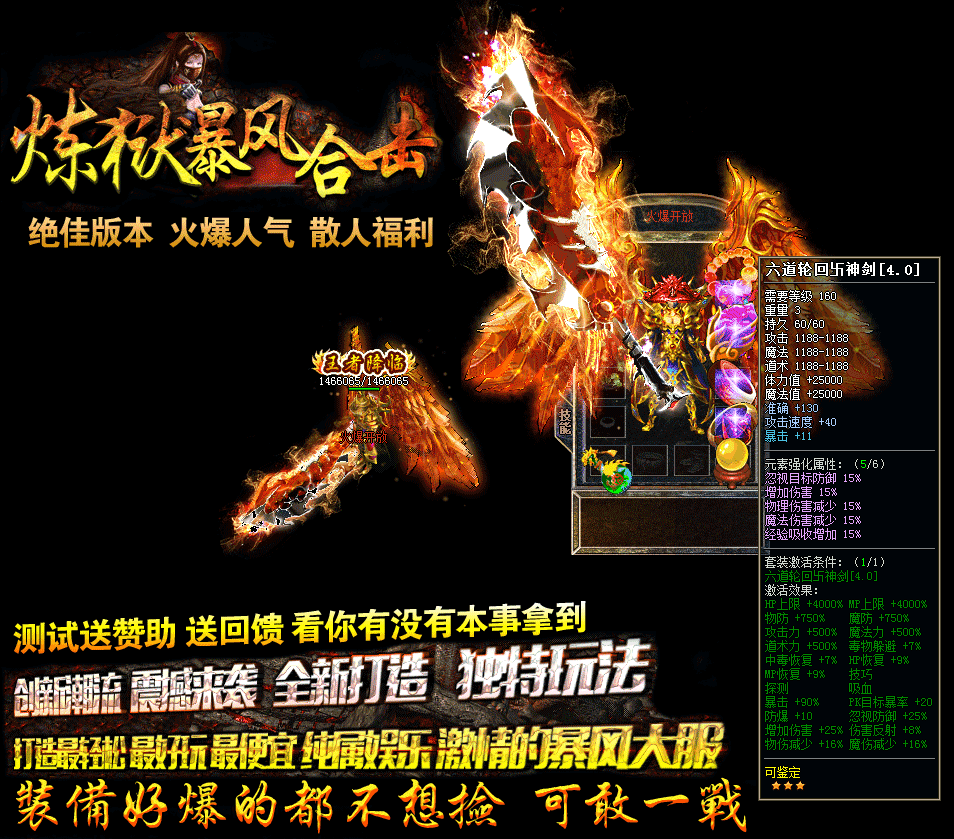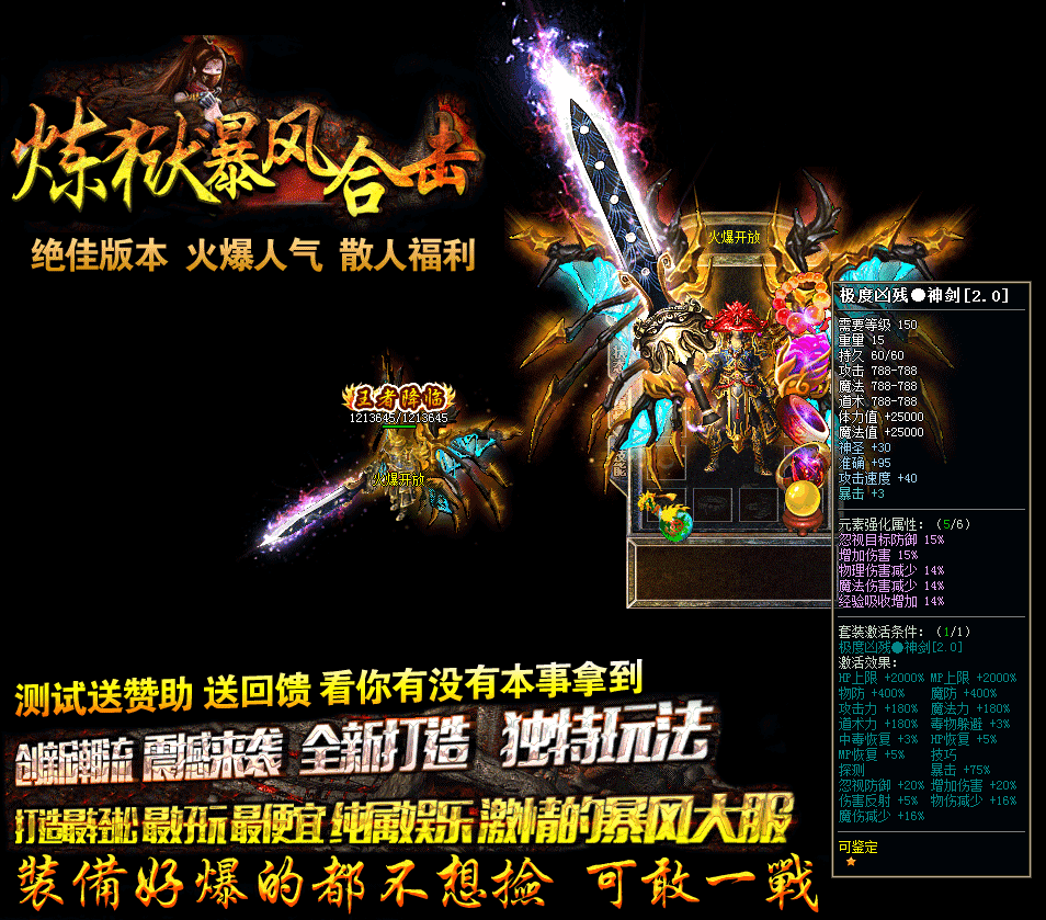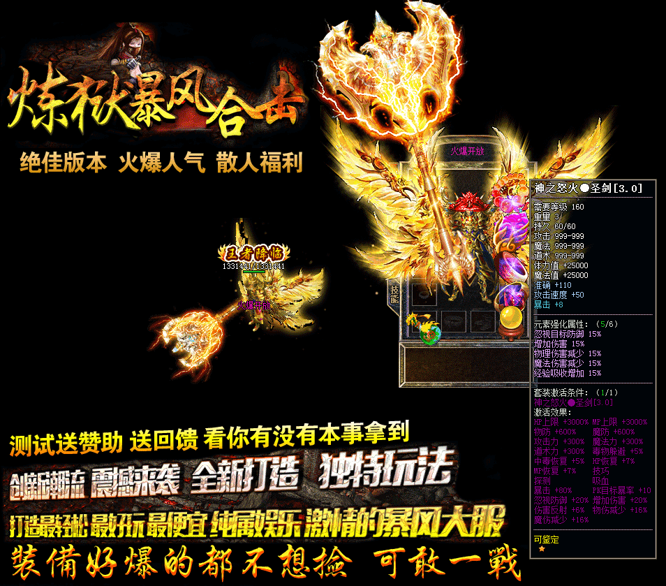 【游戏介绍】:你们的支持给与我们动力,实力团队运营,独创经典暴风合击!