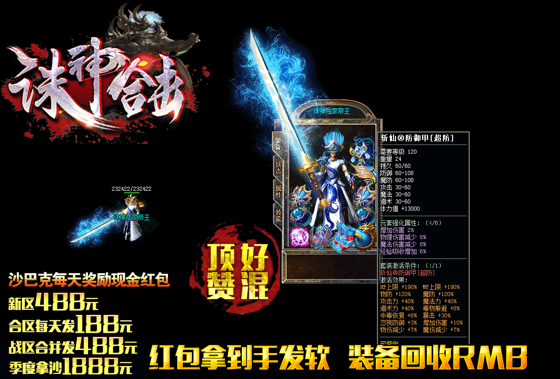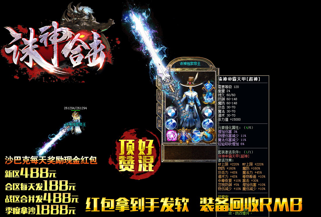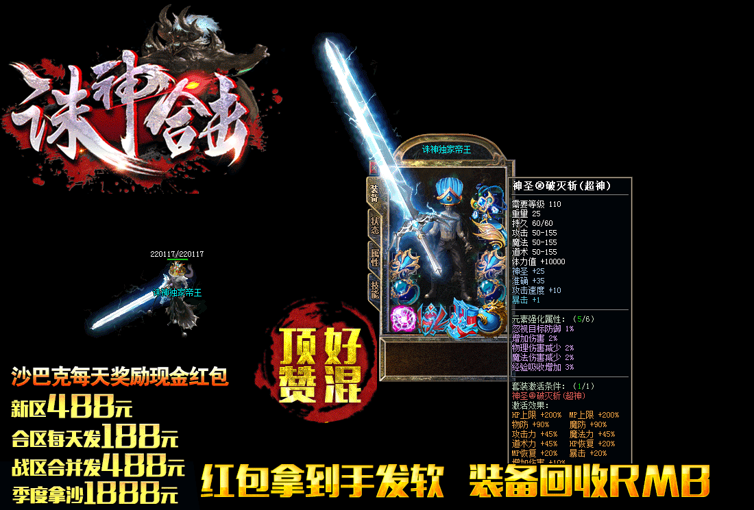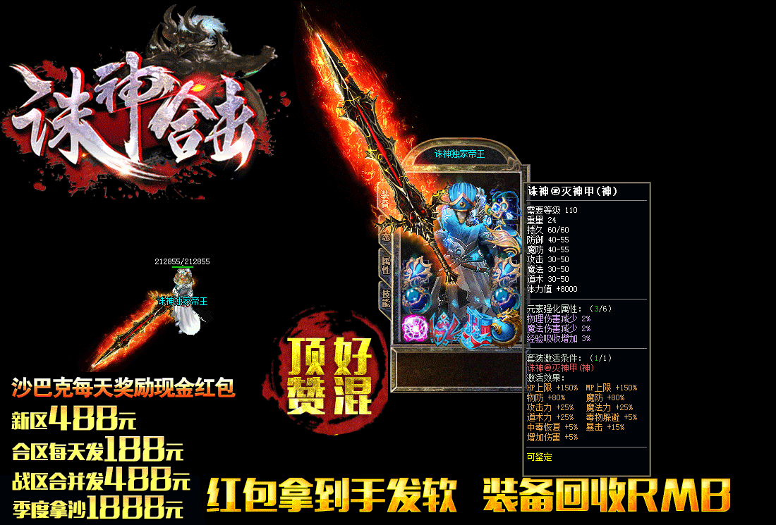 装备回收RMB介绍 >> 诛神霸天10星套永久回收价格是1000人民币一套