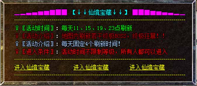 ★ 仙境宝藏,此活动同样选择了一个大小适宜的地图,不会出现活动只属于充钱的玩家