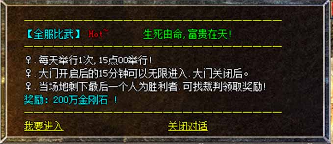 ★ 全服比武,看谁不服,不图虚名财富,就只问你服是不服!
