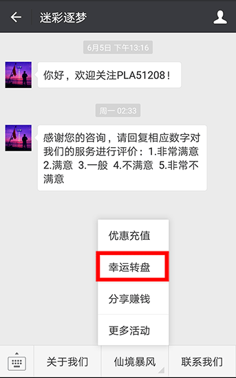 本公司为实业公司,经营项目众多,不定期通过公众平台进行幸运转盘活动回馈老铁们的厚爱