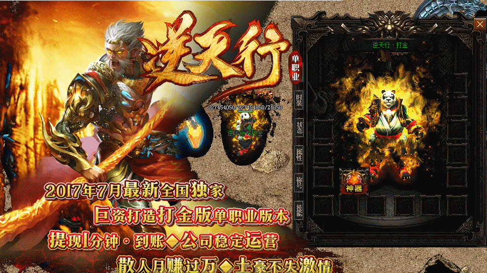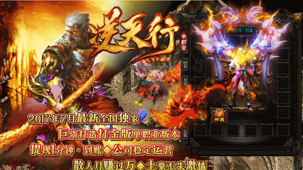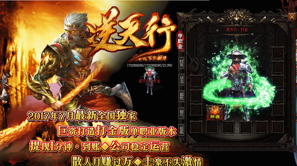 - 【版本介绍】开创单职业史诗神话.逆天行·单职业,2017最有影响力的大型.打金单职业作品