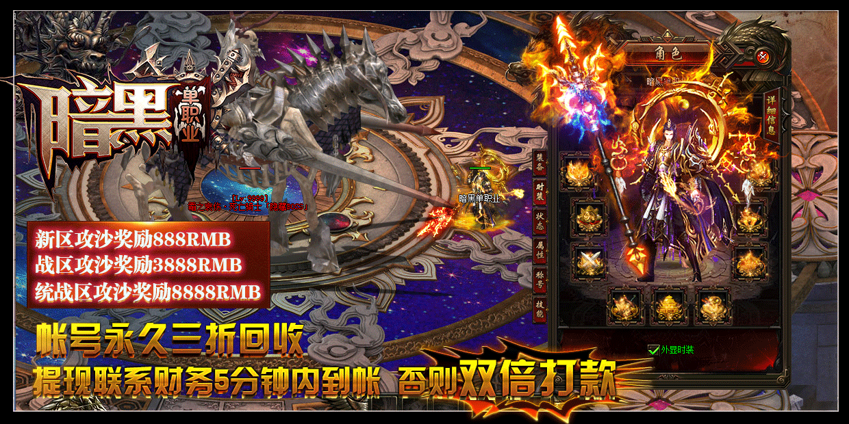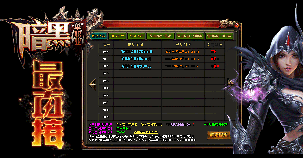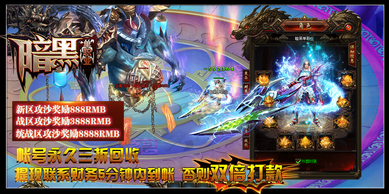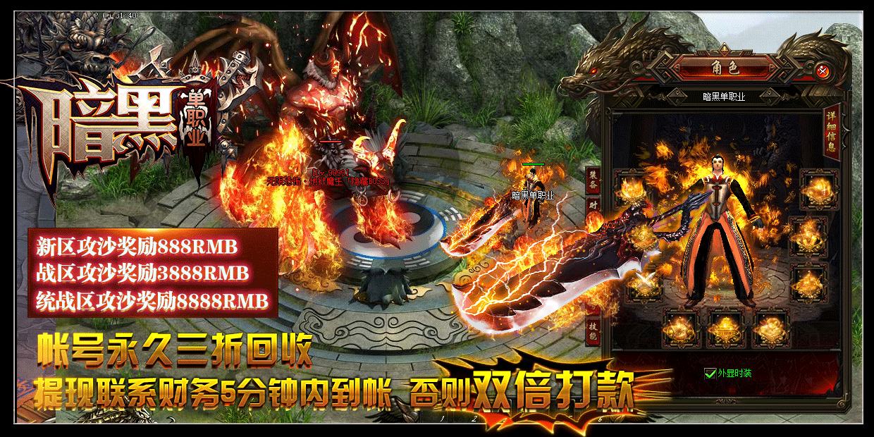[充值比例] 元宝1:10000 暗黑币1:100 点卡赠送90% 网银100%