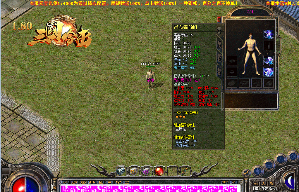 - 【游戏介绍】 本服为无GM模式运营,元宝.金刚石.装备.永久保值,保证游戏公平公正
