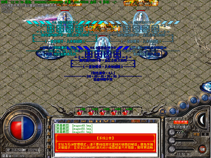 重要提示:★花钱的是大爷,亲们请切记这句话,无论广告服还是平台服,RMB玩家肯定是占有优势的.