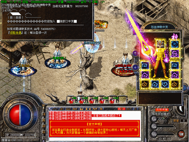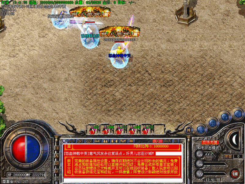 元宝比例:★本服有待遇.........★★待遇在小安全区旁边领取.欢迎广大新老玩家进服体验..