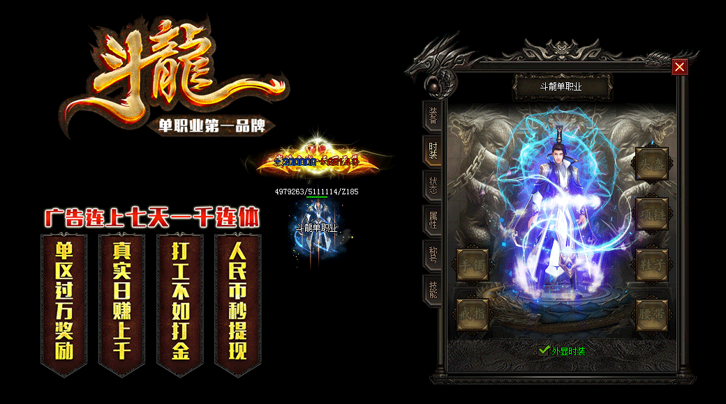 - 【充值比例】元宝1:10000,斗龍币1:100 点卡赠送100% 网银赠送100%