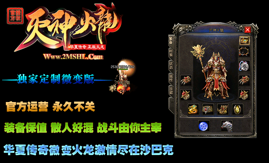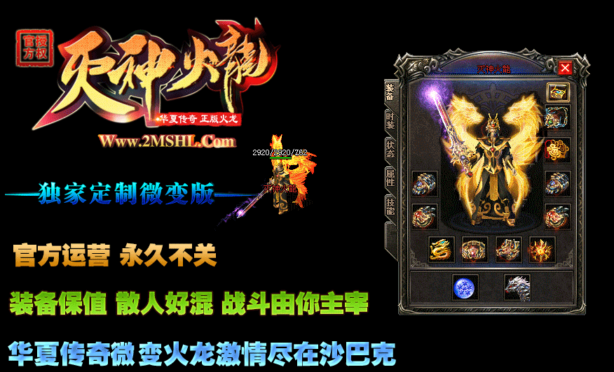 版本介绍:2017年独家定制微变版【灭神火龍】华夏传奇策划组历时三个月呕心力作!欢迎体验 2017新版本