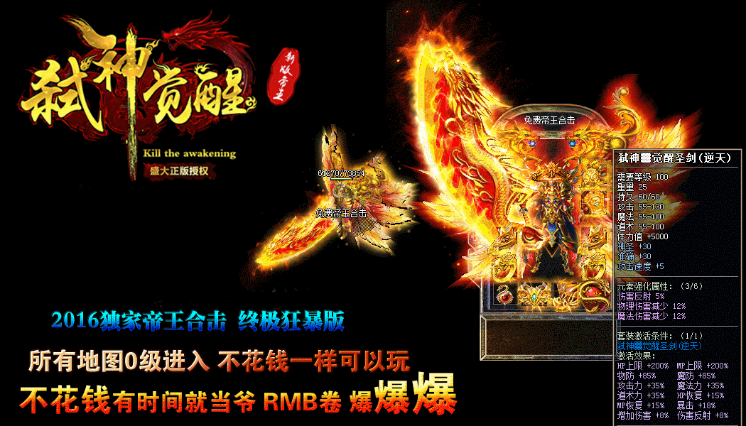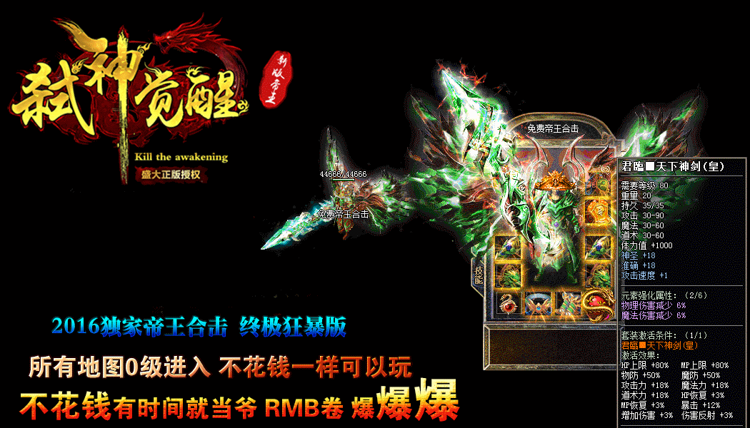 【游戏介绍】:所有装备全部爆出,无任何保留,有时间就当爷的服!!