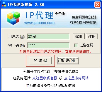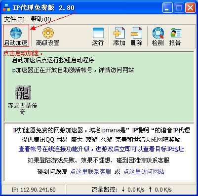 八零九零服联合Ipmana(27代理)推出八零九零服传奇系列加速工具,本加速器可以针对八零九零服传奇所有服务器加速,适合于部分联通或者地区网络卡以及无法登陆的玩家,进行有效的加速解决!除本版本外,八零九零服传奇禁止使用其他一切加速器,新用户可以使用公用账号27net,此账号每天晚上12点会掉线一次,需重新登陆,建议各位注册一个账号登陆即可,无需费用,注册账号激活后可选择更多高级节点,且不掉线!