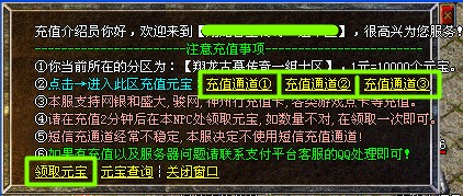 第三步:进入游戏点击NPC【元宝充值使者】领取元宝,OK了,很简单吧-_-.