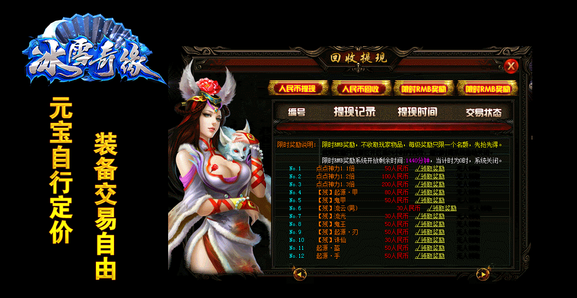 【游戏介绍】 充值比例:1RMB:2个灵符 点卡:1RMB=2个灵符