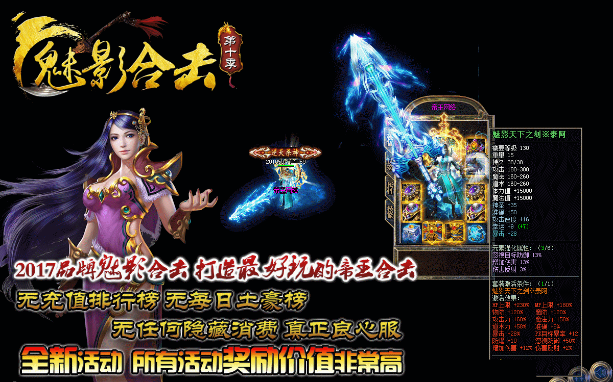 【十季更新】:十季度全新玩法 活动价值超高 装备爆率无限高