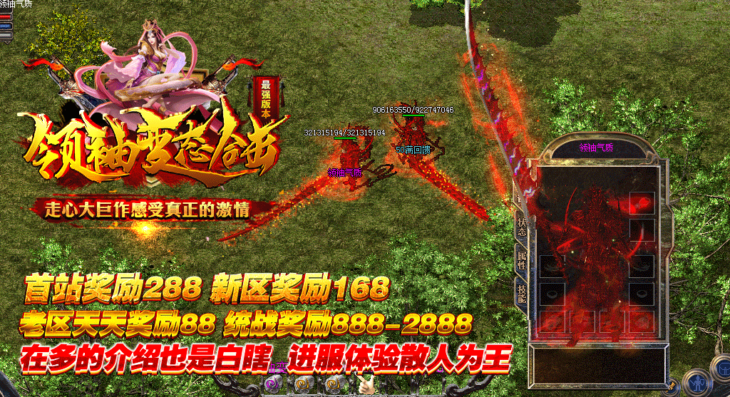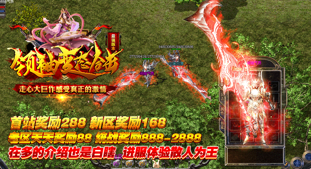 全新变态合击特色变态火爆开启,全新的游戏玩法,全新的怪物地图,快回来战斗!