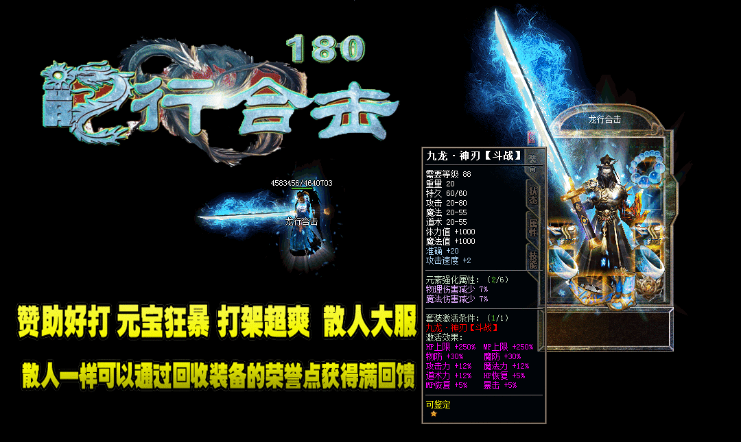 - 游戏介绍:全新概念龙行大极品,独家版本,新增全新3D地图复古不闪眼。!