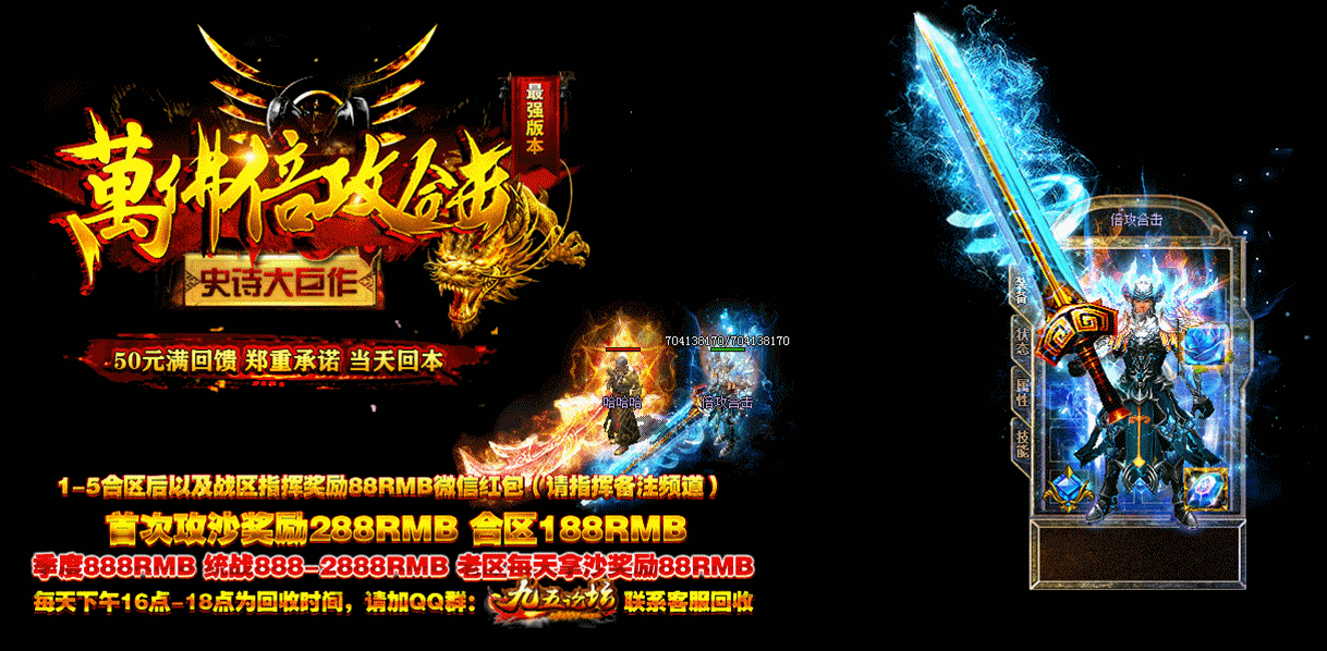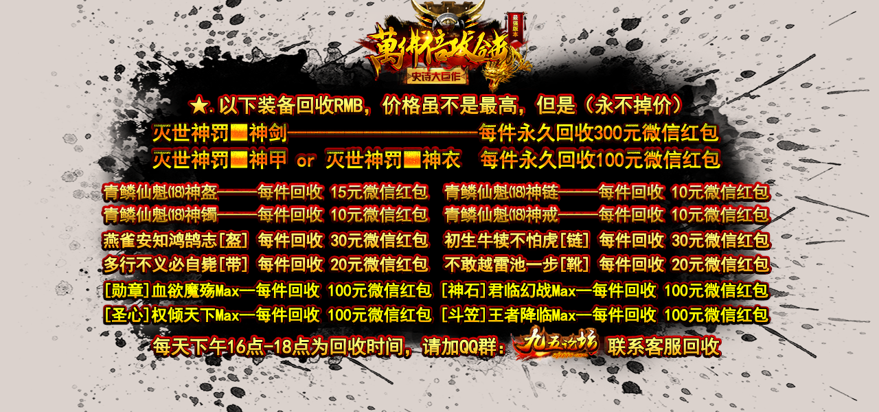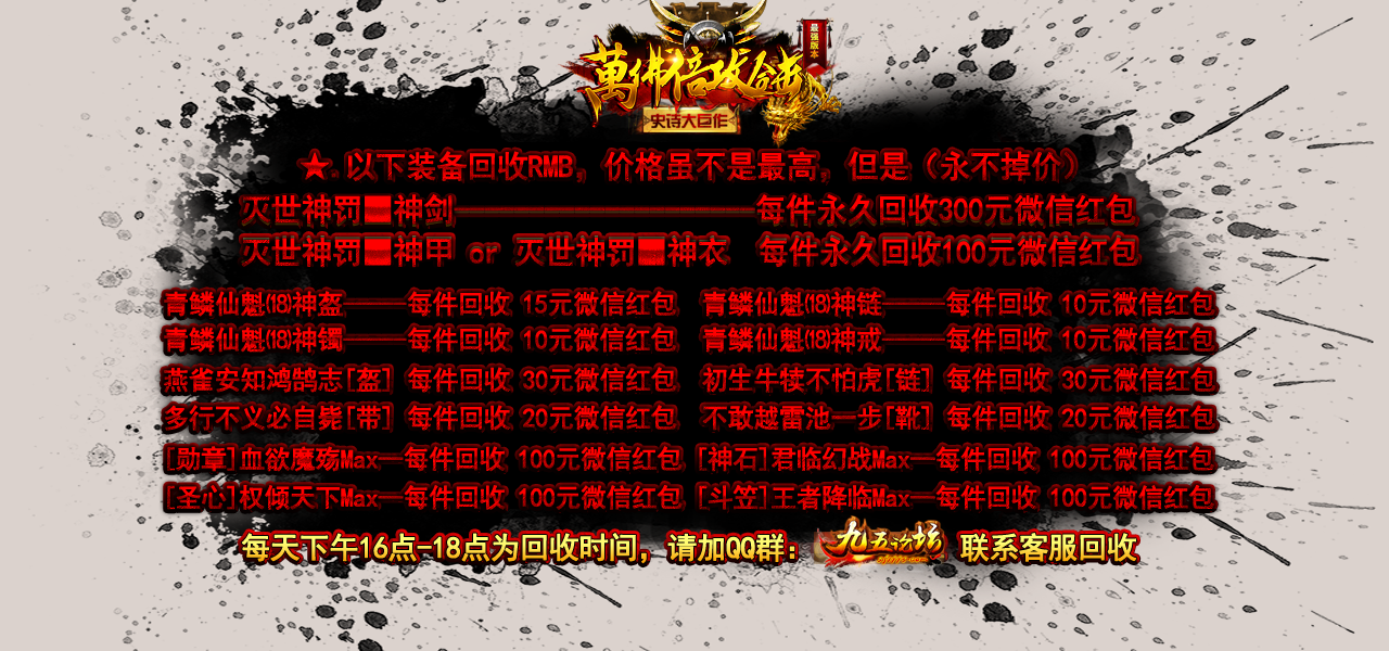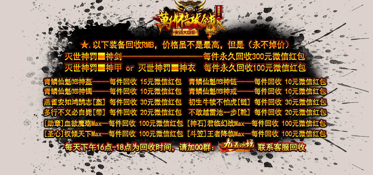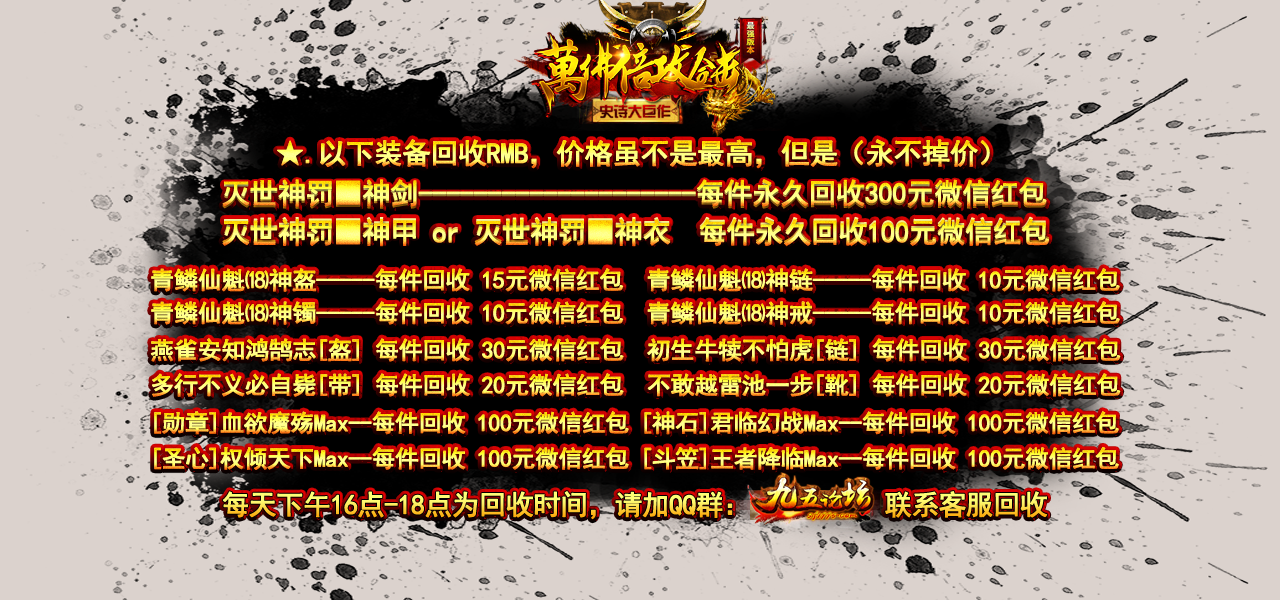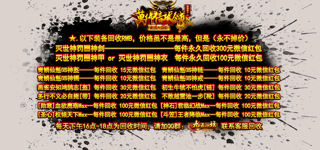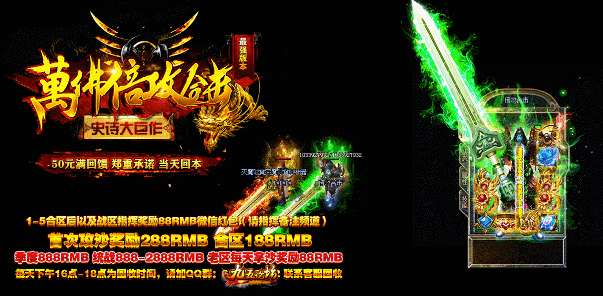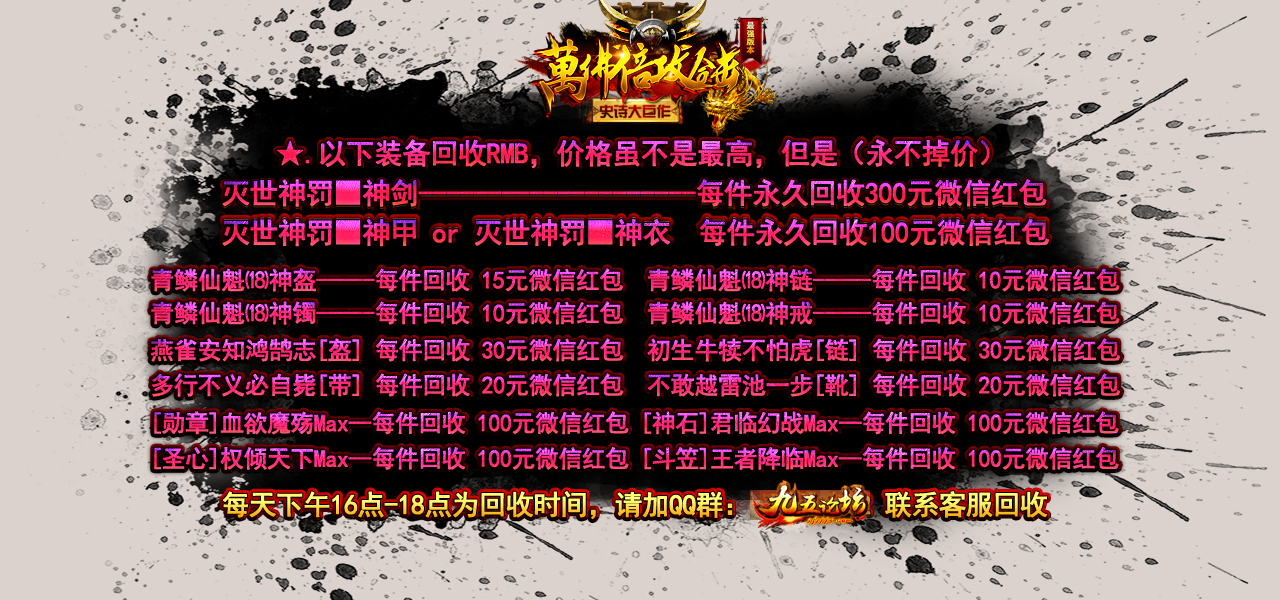 [萬佛]炼狱诛仙 佩戴触发5倍攻魔道! 轩辕夏禹①神剑 佩戴触发10倍攻魔道! 碧玉无双②神剑 佩戴触发20倍攻魔道! 南征北伐③神剑 佩戴触发40倍攻魔道! 傲血狂龙④神剑 佩戴触发80倍攻魔道! 惊天动地⑤神剑 佩戴触发120倍攻魔道! 干将莫邪⑥神剑 佩戴触发150倍攻魔道! 乱世崛起⑦神剑 佩戴触发180倍攻魔道! 鸿蒙创世⑧神剑 佩戴触发200倍攻魔道! 龍嘯戰天⑨神剑 佩戴触发250倍攻魔道! 七星龙渊⑩神剑 佩戴触发300倍攻魔道! 空冥天仙⑾神剑 佩戴触发350倍攻魔道! 萬界婆娑⑿神器 佩戴触发380倍攻魔道! 麒麟轮回⒀神器 佩戴触发480倍攻魔道! 魔魂血煞⒁神兵 佩戴触发580倍攻魔道! 龍麟鳳羽⒂神器 佩戴触发688倍攻魔道!破复活 灭魔彩霓⒃神器 佩戴触发780倍攻魔道!破复活 吾皇遮天⒄神兵 佩戴触发880倍攻魔道!破复活 青鳞仙魁⒅神兵 佩带触发1088倍攻魔道!破复活 龙凤呈祥⒆神兵 佩带触发1288倍攻魔道!破复活 特殊属性:30-50秒触发一次功倍加成300倍 持久10秒!!! 斗破苍穹■神剑 佩带触发1488倍攻魔道!破复活 特殊属性:30-50秒触发一次功倍加成600倍 持久10秒!!! 每季都会更新,一个版本开一年!! 每季都会更新,一个版本开一年!! 每季都会更新,一个版本开一年!! ========================================================= 前期发展:传送员危险地图,开区刷出一只超级BOSS,爆率超级高,千万别放过! 前期发展:传送员危险地图,开区刷出一只超级BOSS,爆率超级高,千万别放过! 前期发展:传送员危险地图,开区刷出一只超级BOSS,爆率超级高,千万别放过! 关于活动:所有活动爆出所有物品,爆率超级高。非常激情哦。! 关于活动:所有活动爆出所有物品,爆率超级高。非常激情哦。! 关于活动:所有活动爆出所有物品,爆率超级高。非常激情哦。! ========================================================= 青鳞仙魁⒅神甲 防全毒物品!可鉴定牛逼技能 每秒回血 1000W 青鳞仙魁⒅神衣 防全毒物品!可鉴定牛逼技能 每秒回血 1000W 龙凤呈祥⒆神甲 防全毒物品!可鉴定牛逼技能 每秒回血 1500W 龙凤呈祥⒆神衣 防全毒物品!可鉴定牛逼技能 每秒回血 1500W 斗破苍穹■神甲 防全毒物品!可鉴定牛逼技能 每秒回血 3000W 斗破苍穹■神衣 防全毒物品!可鉴定牛逼技能 每秒回血 3000W ========================================================= [斗笠]麒麟轮回 :击杀爆率:佩戴激活每秒回血200万 [圣心]独孤求败 :吸血属性:佩戴激活每秒回血200万 [魔石]神之恩赐 :减伤属性:佩戴激活每秒回血200万 [勋章]麒麟轮回 :复----活:佩戴激活每秒回血200万 [勋章]风云再起 :复----活:佩戴激活每秒回血500万 ========================================================= 一天双终极没问题,散人也无限制地图。进去就干。 一天双终极没问题,散人也无限制地图。进去就干。 一天双终极没问题,散人也无限制地图。进去就干。 一天双终极没问题,散人也无限制地图。进去就干。 一天双终极没问题,散人也无限制地图。进去就干。 ========================================================= 首次攻沙奖励288RMB 合区188RMB 季度888RMB 统战888-2888RMB 老区每天拿沙奖励88RMB 首次攻沙奖励288RMB 合区188RMB 季度888RMB 统战888-2888RMB 老区每天拿沙奖励88RMB 首次攻沙奖励288RMB 合区188RMB 季度888RMB 统战888-2888RMB 老区每天拿沙奖励88RMB 首次攻沙奖励288RMB 合区188RMB 季度888RMB 统战888-2888RMB 老区每天拿沙奖励88RMB ========================================================= 1-5合区后以及战区指挥奖励88RMB微信红包(请指挥备注频道) 1-5合区后以及战区指挥奖励88RMB微信红包(请指挥备注频道)5合区后以 |