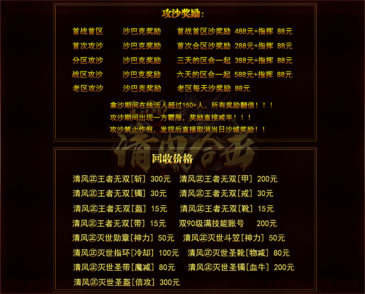◆[攻沙奖励]:玩家可在游戏中查询拿沙奖励!