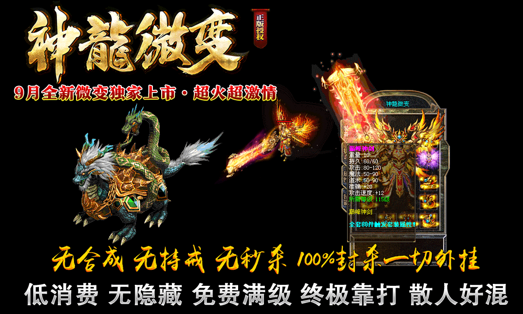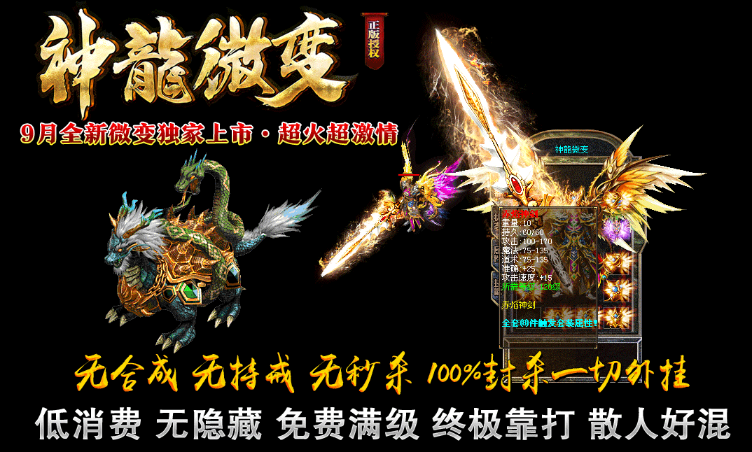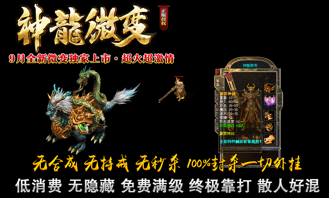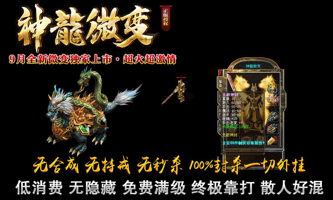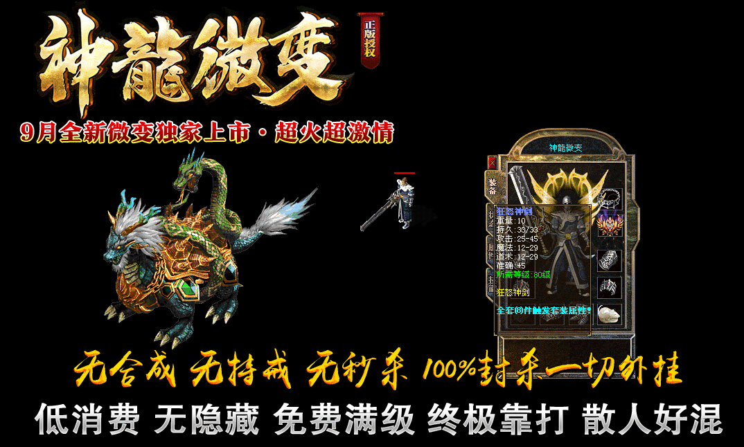 日火爆上市《神龍微变》上线满级!装备靠打!散人好混!