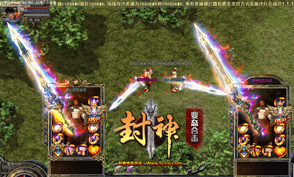 版本介绍【版本介绍】:新年巨献:封神变态合击.每日万元RMB广告绝对保证人气.基情不断 欢乐嗨翻天 【元宝比例】:短信1=2500000元宝 网银1元=5000000元宝 全服统一比例,公平,公正 【合区方式】:有规律的合区。(绝对给予发展的机会)保证激情火爆,只看您是否激战到最后! 【玩家交流群】:封神变态合击玩家交流群: 288237891
