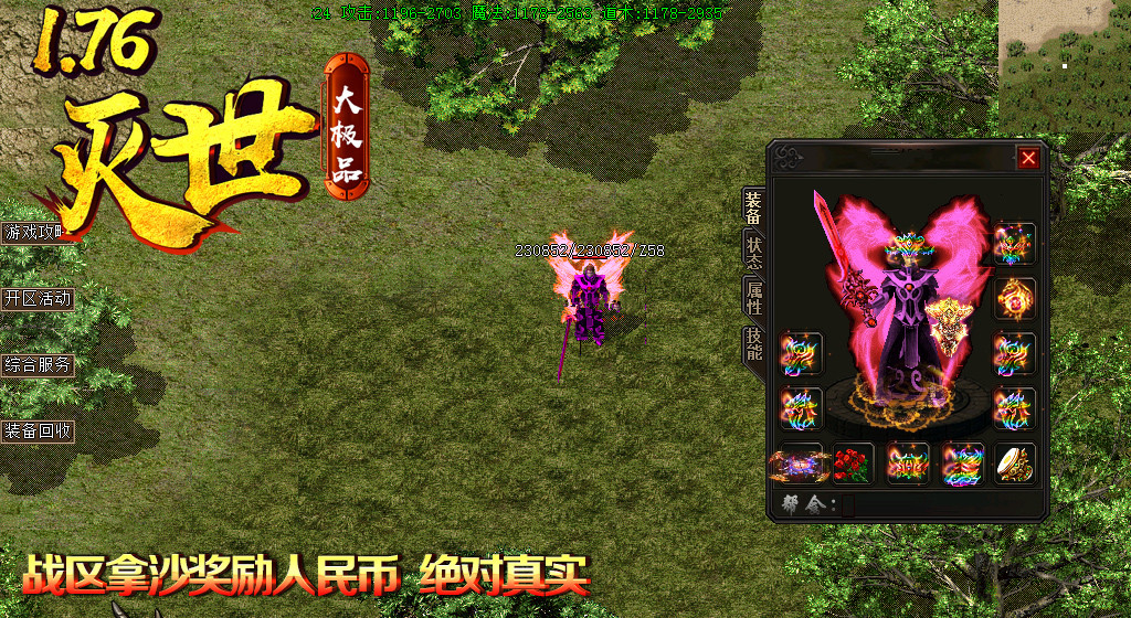 - 本服所有都能打,世界BOSS必爆充值卷!散人好混!良心版本!