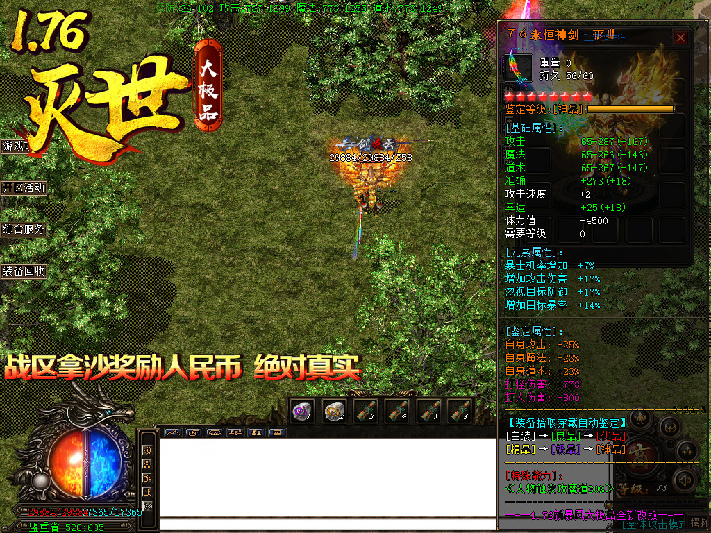 - 大极品+99,大元素+16%,装备好打,区区激情合区稳定160+以上!