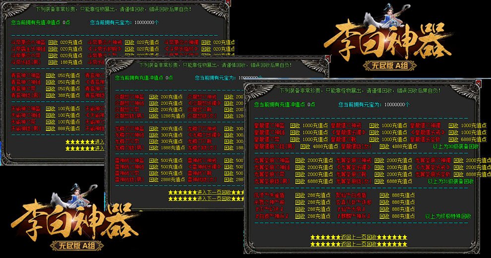 充值介绍 元宝1:20000 龙币1:20 点卡90% 网银赠送100%