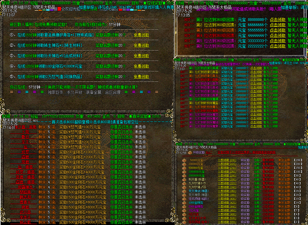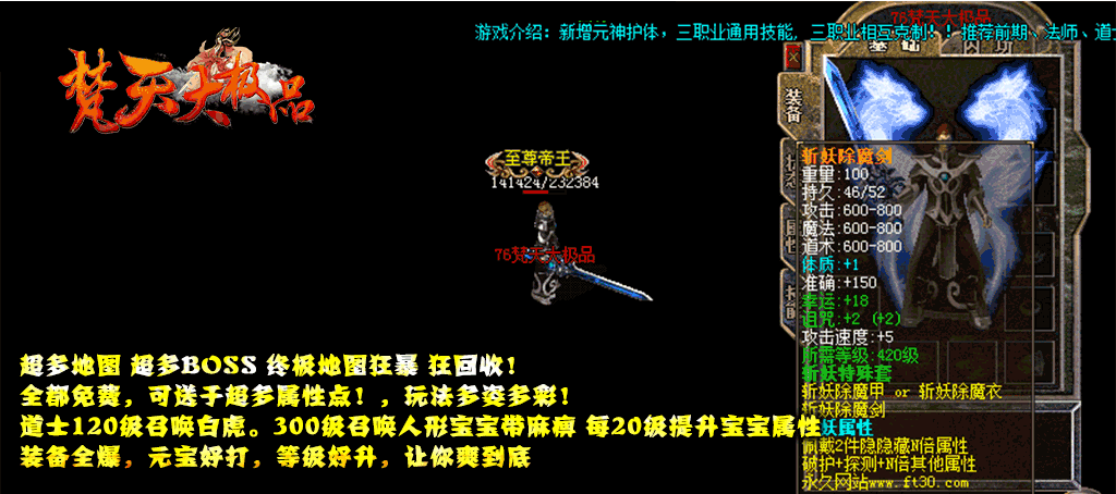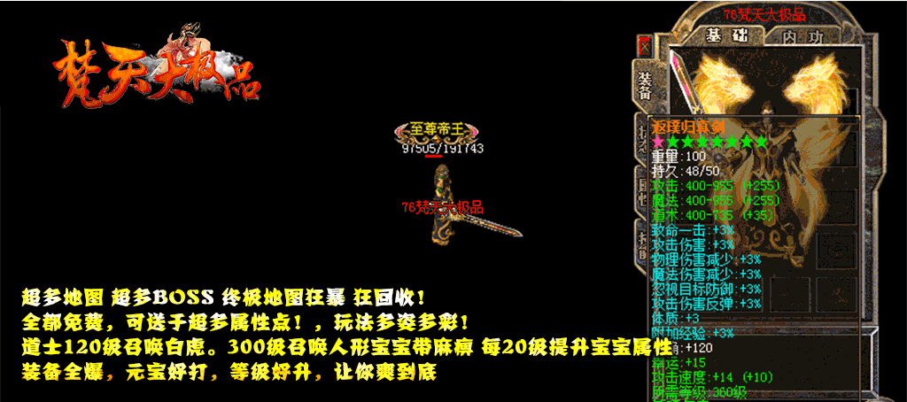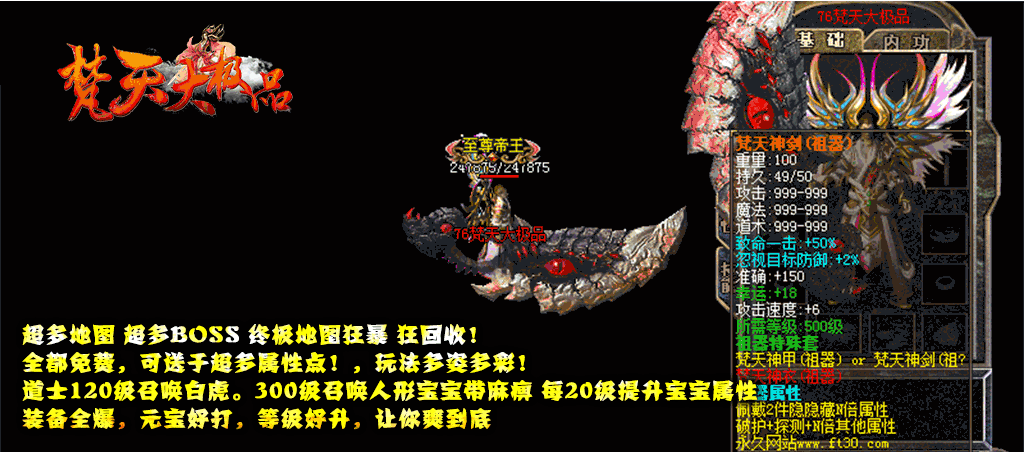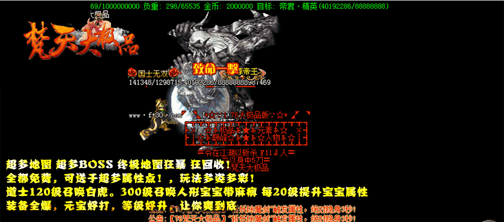 - ☆地图介绍:几十张地图·怪物满屏·野外BOSS·全天刷新·免费开放
