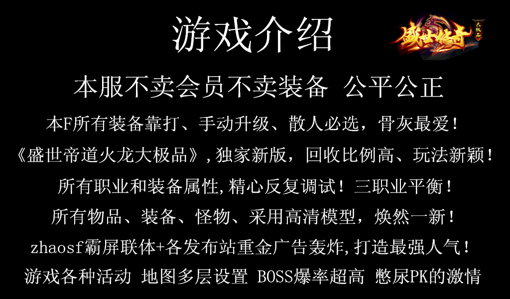 一、最新1.80《盛世帝道火龙大极品》,独家新版,回收比例高、玩法新颖!