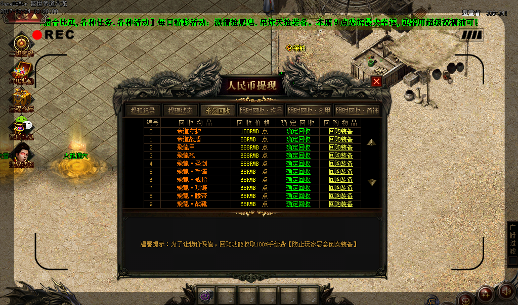 七、全新打金模式、打BOSS触发爆RMB、装备回收RMB比例高、活动多!