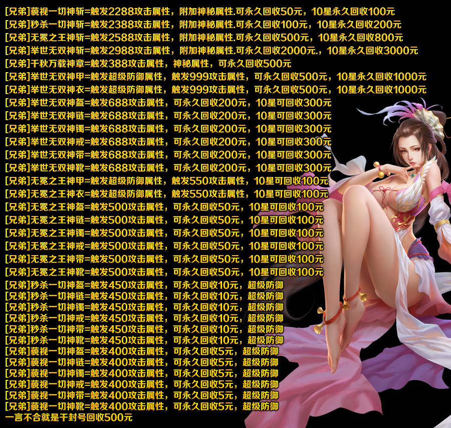 【版本介绍】:年底巨献:兄弟变态合击.每日万元RMB广告绝对保证人气.基情不断 欢乐嗨翻天 【元宝比例】:短信1=2500000元宝 网银1元=2500000元宝 全服统一比例,公平,公正 【爆率介绍】:本服任何地图BOSS击杀都有丰富元宝奖励.从初级到终极地图爆率非常之高.散人不在沉默. 【合区方式】:有规律的合区。(绝对给予发展的机会)保证激情火爆,只看您是否激战到最后! 【玩家交流群】:兄弟变态合击千人群:8群: 腾飞版本库 【开区时间】:每日:10.40 13.40 16.40 19.40 22.40 |