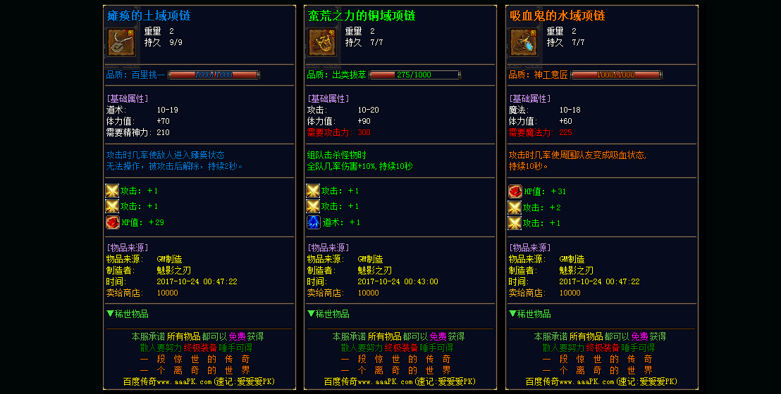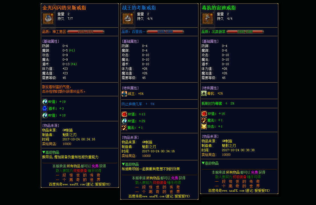 【装备层次】: 装备有很多很多,没有真正意义上的终极,装备BUFF上千种,保证了好玩并且耐玩!!