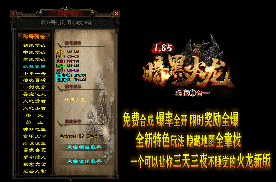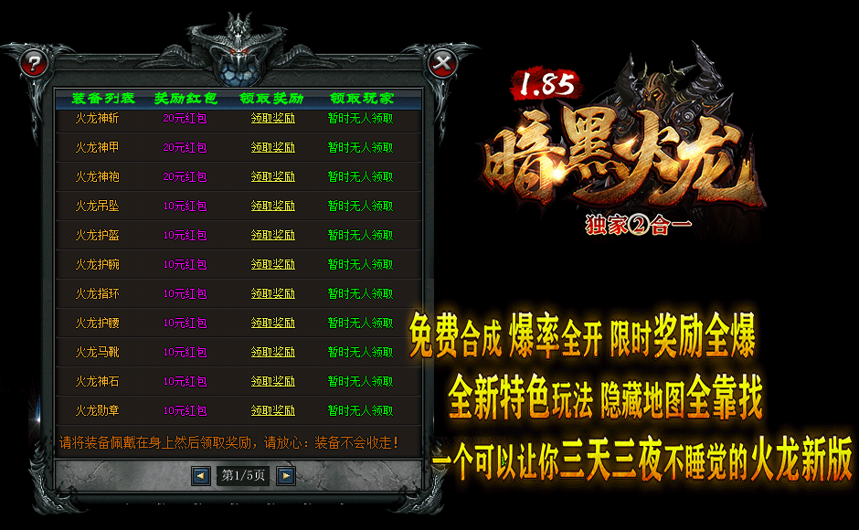 - ②小资玩家 小资玩家充值100元领取全服唯一礼包 随即可以去首充地图刷怪 此地图爆全服所有装备