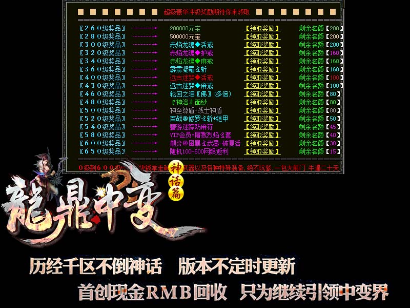 - 游戏介绍⑨ > 第二天晚8点拿沙,新区奖励500RMB+终极装备+现金红包,激情从未停止过.