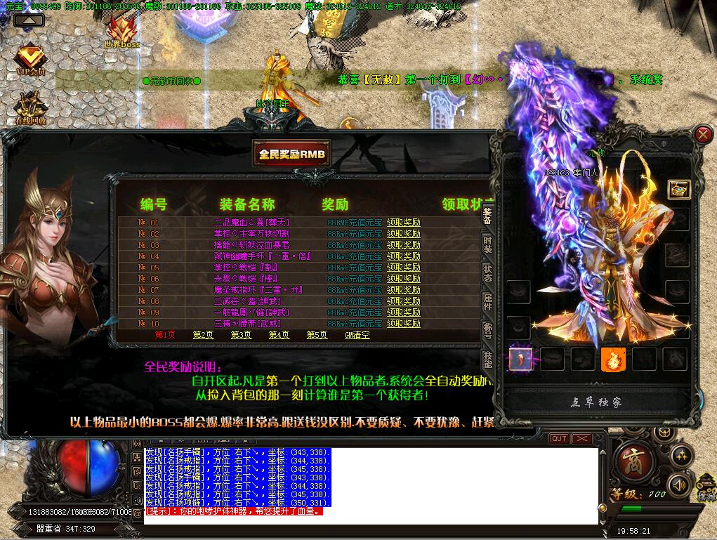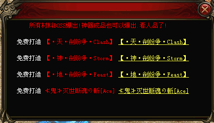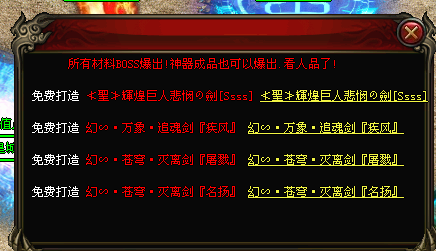 所有装备全部靠打,BOSS掉一切 神器免费合成